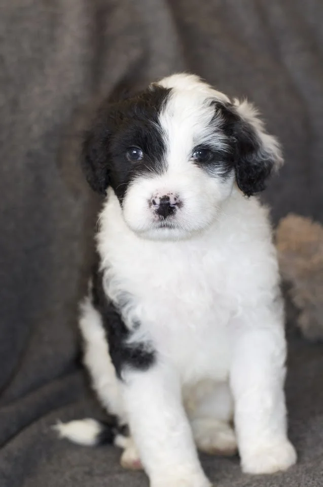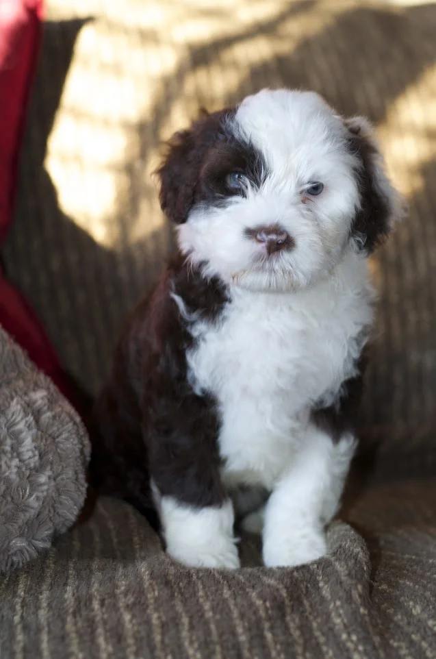 Nani is the protector of the homestead and loves to inspect the property thoroughly of any intruders. Although she has a firm bark there's also a shy side. Warm, sensitive and very loving she is a true momma and incredibly nurturing. Curly brown hair with white sox and diamond on the chest and a white muzzle. Appoximately 45lbs with an athletic frame. We exercise water work with Nani and shows fantastic seafarer skills retrieving and diving.
